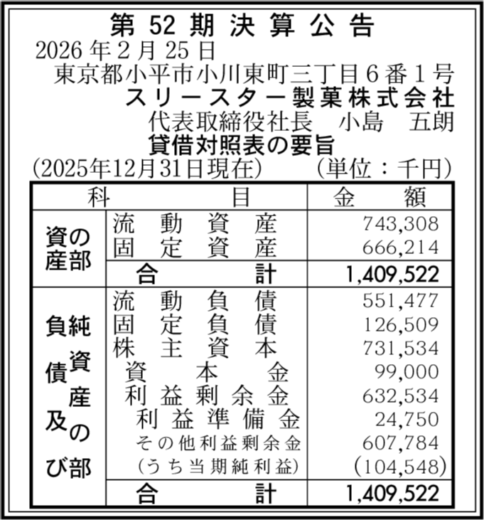 株式会社ベーカリープチ 東京都小平市 【2025年12月期】 |