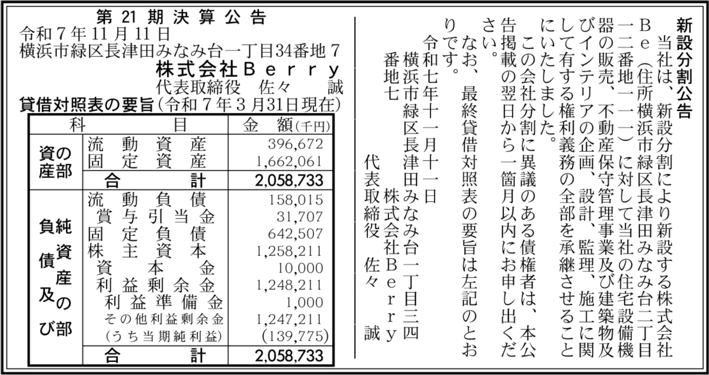 | 会社名 | 株式会社Berry |
