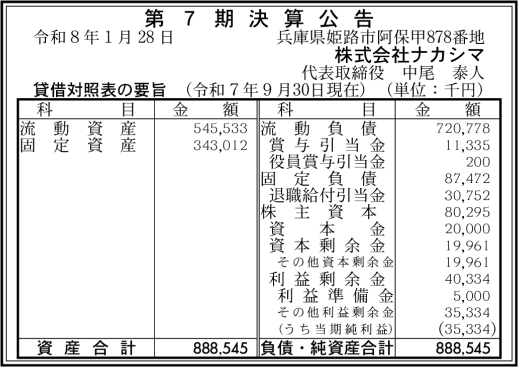 株式会社ナカシマテクノス 兵庫県姫路市 【2025年9月期】 |