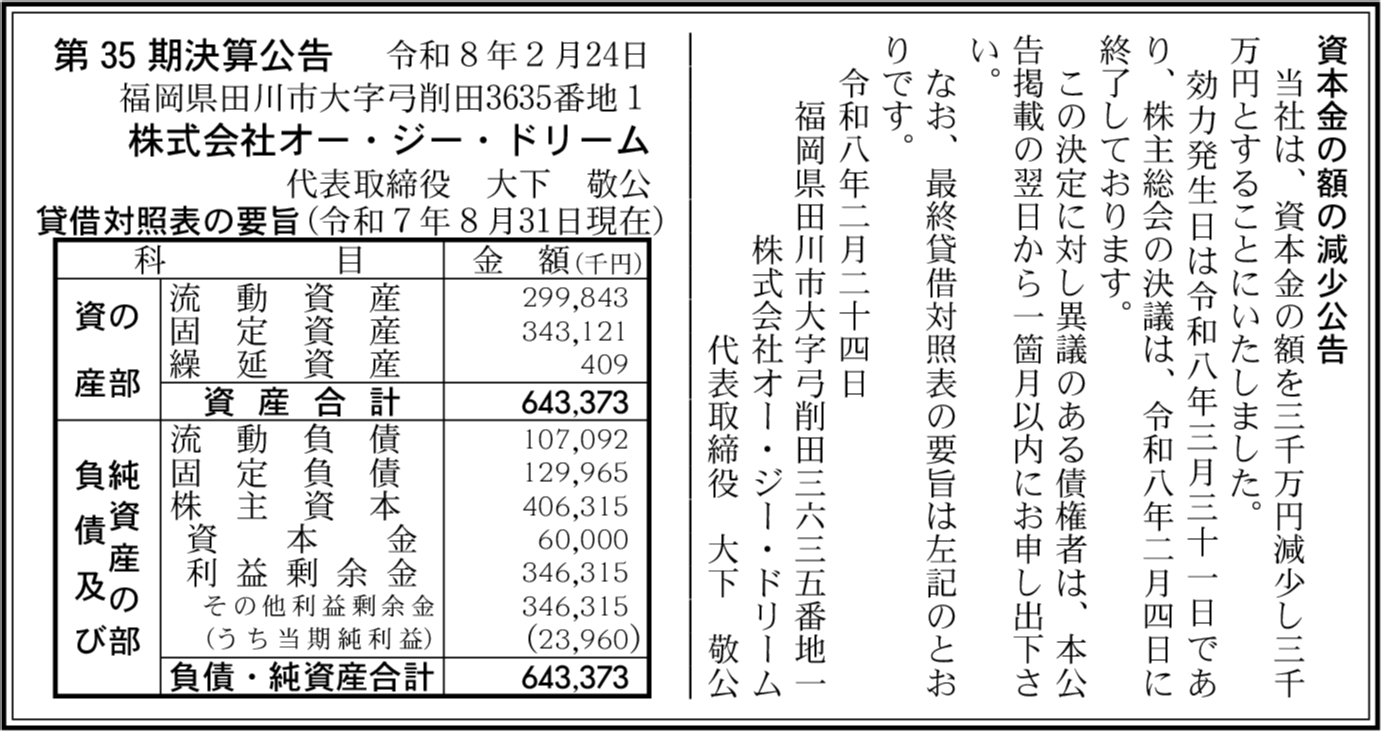 | 会社名 | 株式会社オー・ジー・ドリーム |