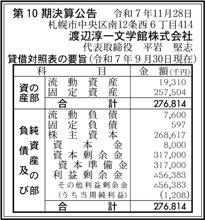 | 会社名 | 渡辺淳一文学館株式会社 |