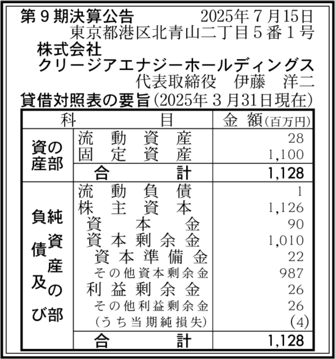 | 会社名 | 株式会社クリージアエナジーホールディングス |