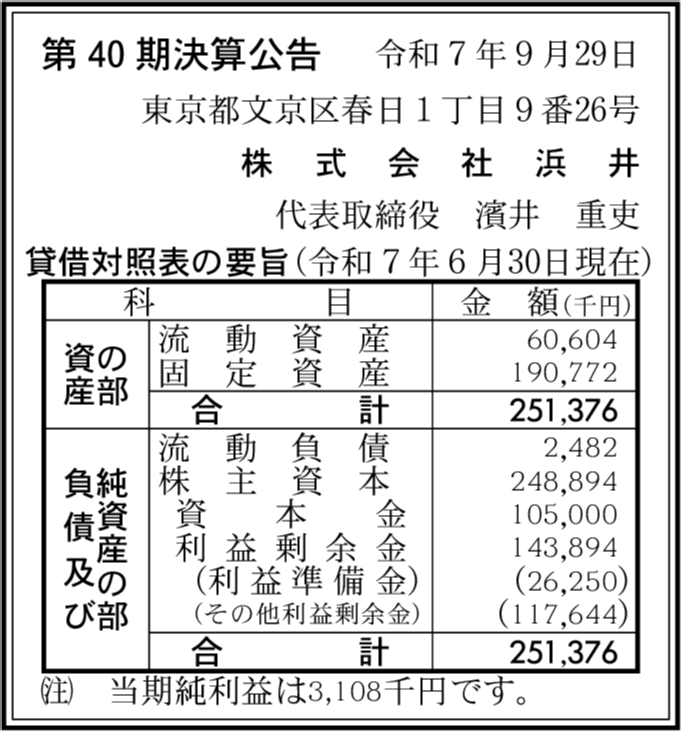 浜井電球工業株式会社 東京都文京区 【2025年6月期】 |