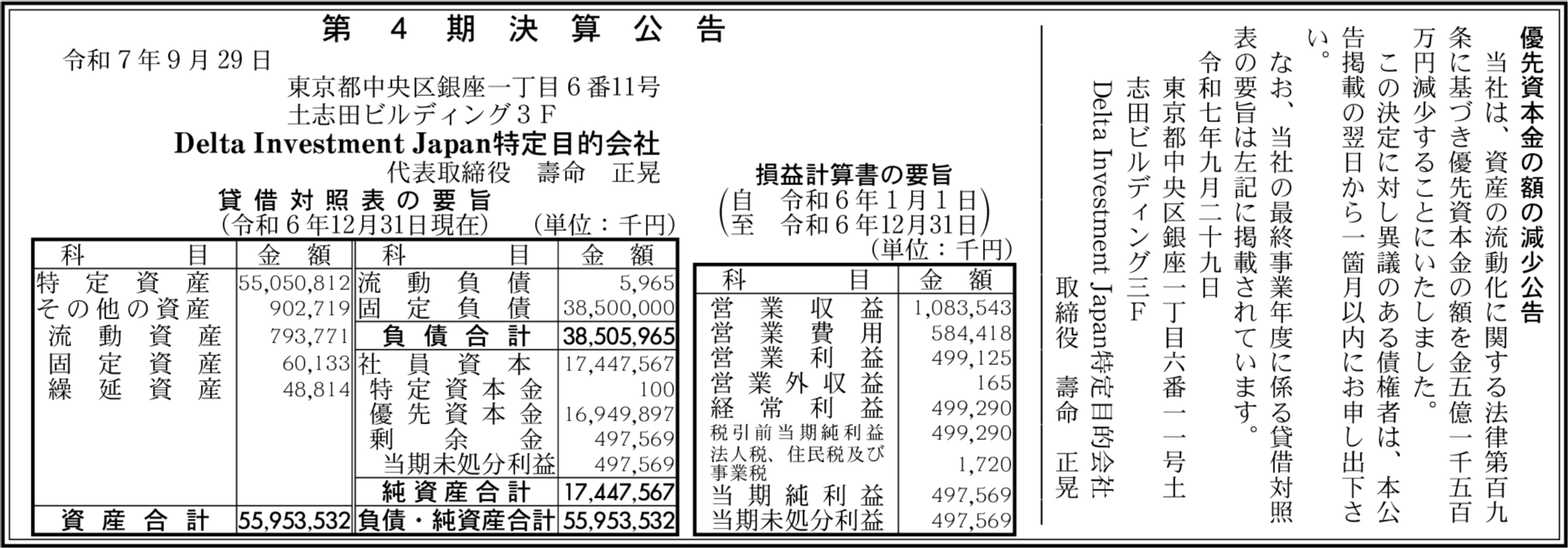 南関東プロパティ特定目的会社閉鎖済み 東京都中央区 【2023年12月期】 |