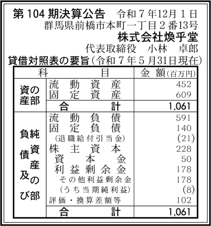 株式会社共進 群馬県前橋市 【2025年7月期】 |