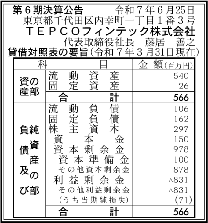 | 会社名 | TEPCOフィンテック株式会社 |