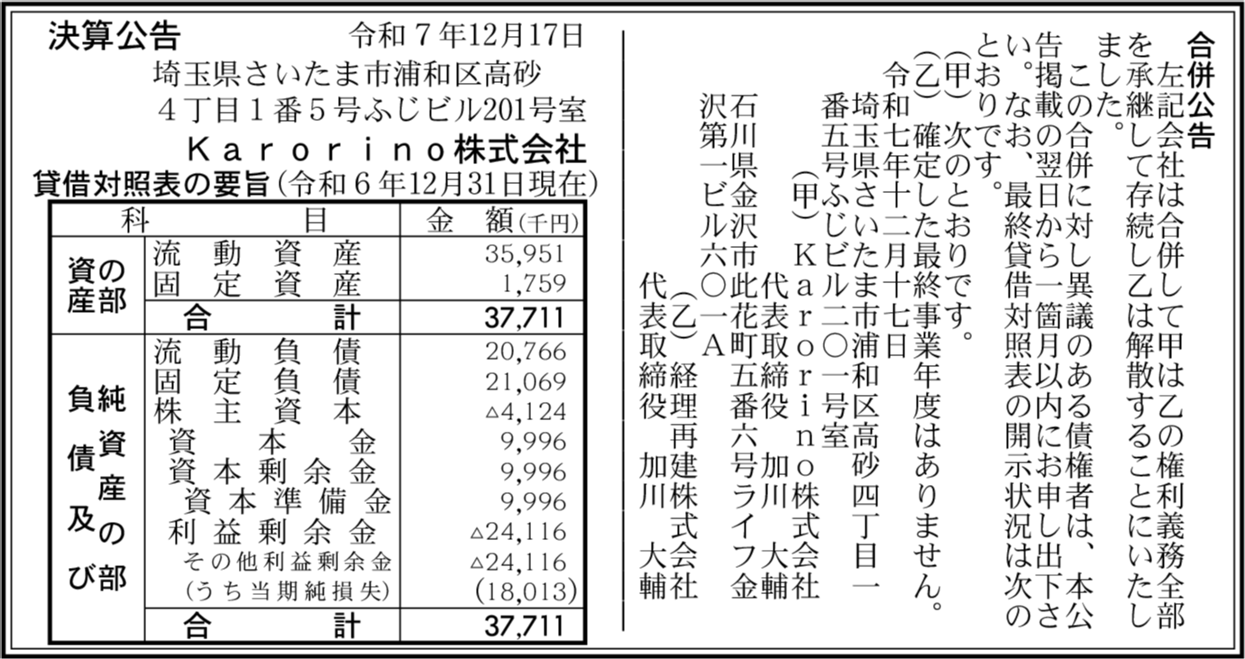 株式会社リアン・フォー閉鎖済み 埼玉県さいたま市浦和区 【2024年8月期】 |