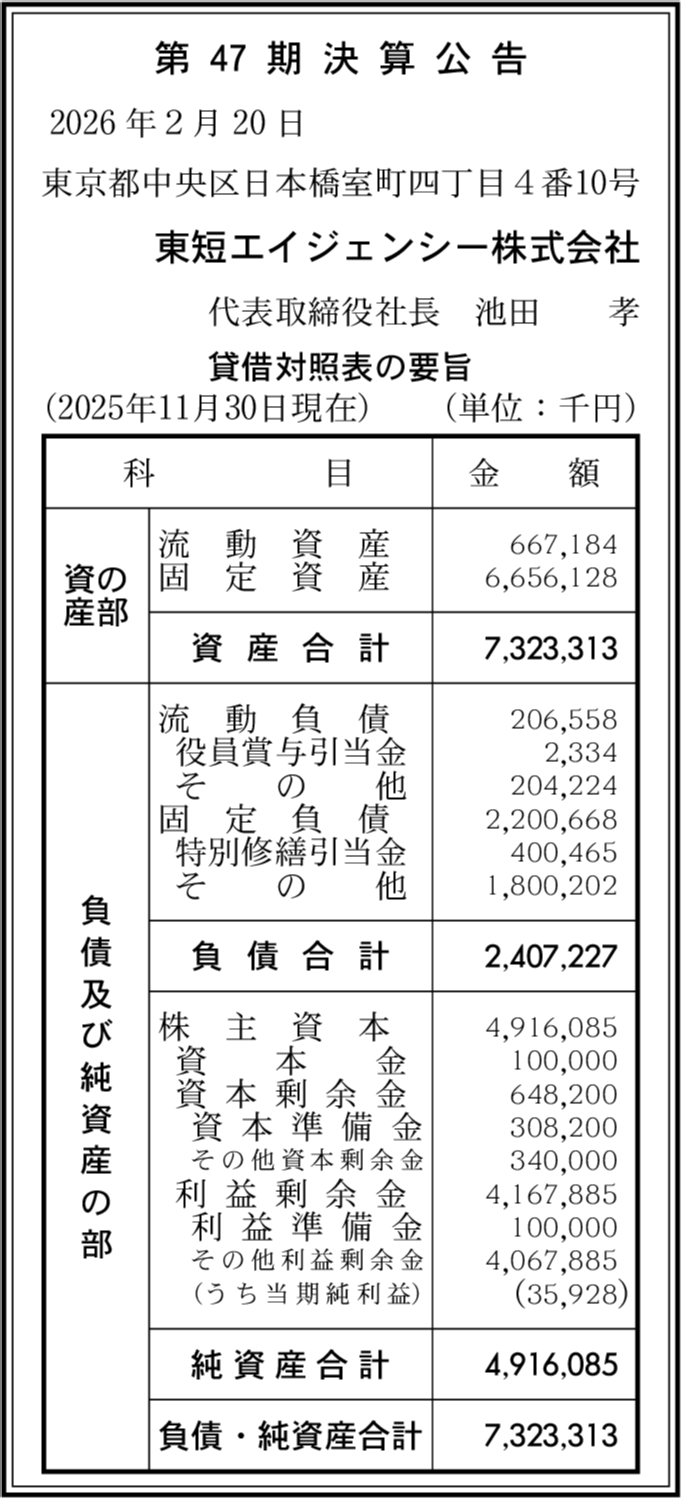 東短リサーチ株式会社 東京都中央区 【2025年11月期】 |