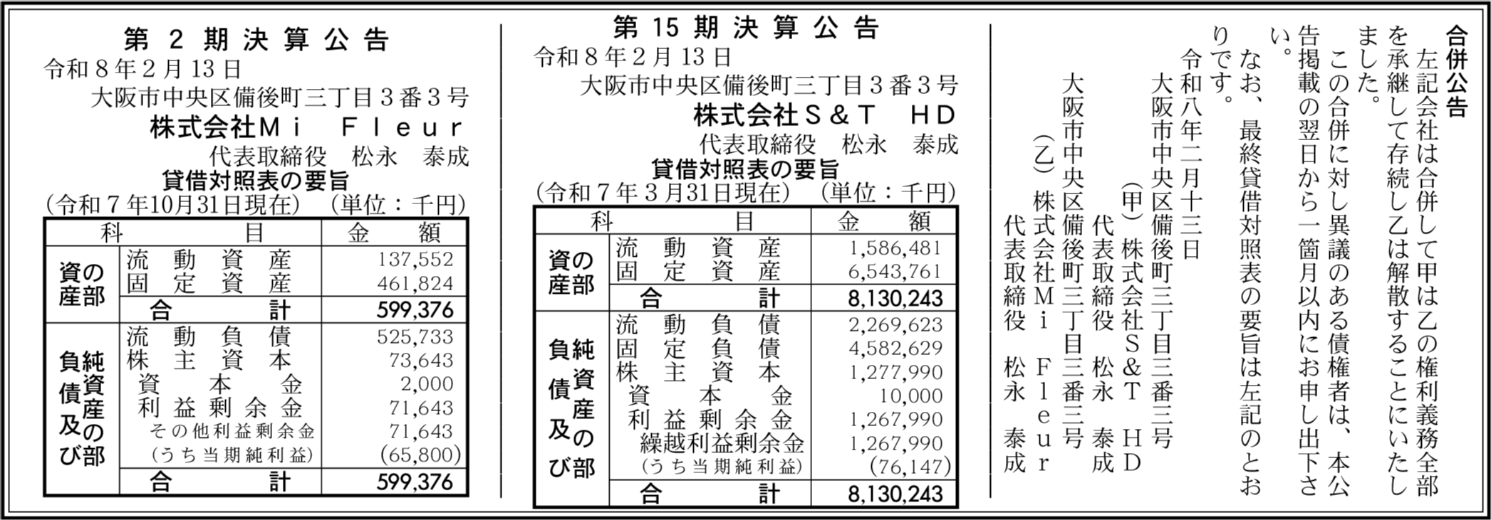 株式会社S&T HD 大阪市中央区 【2025年3月期】 |