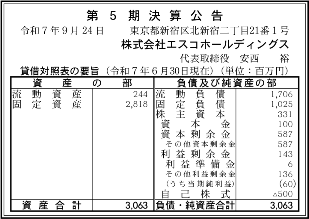 株式会社エスコ 東京都新宿区 【2025年6月期】  |