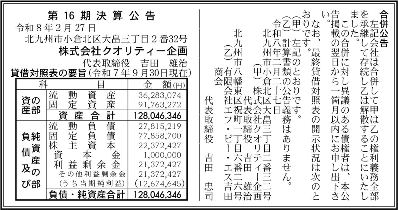 ボングルメ株式会社 福岡県北九州市小倉北区 【2025年3月期】 |
