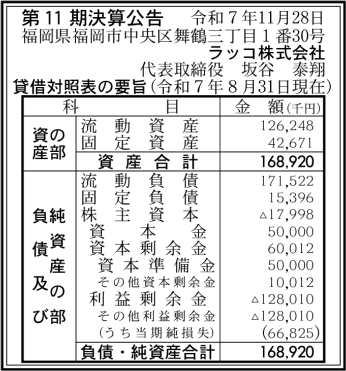 株式会社ディーゼロ 福岡市中央区 【2025年7月期】 |