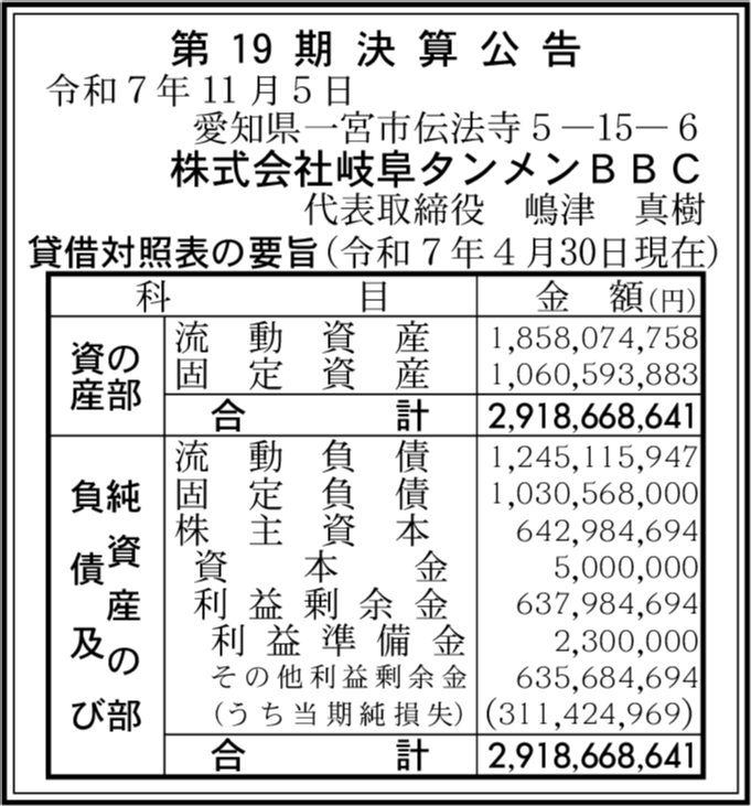 | 会社名 | 株式会社岐阜タンメンBBC |