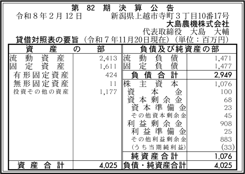 | 会社名 | 大島農機株式会社 |