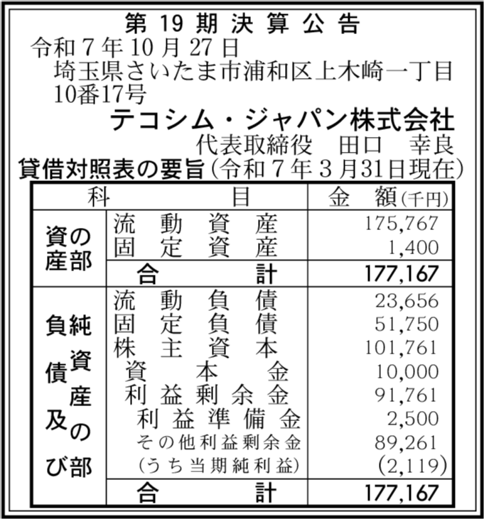| 会社名 | テコシム・ジャパン株式会社 |