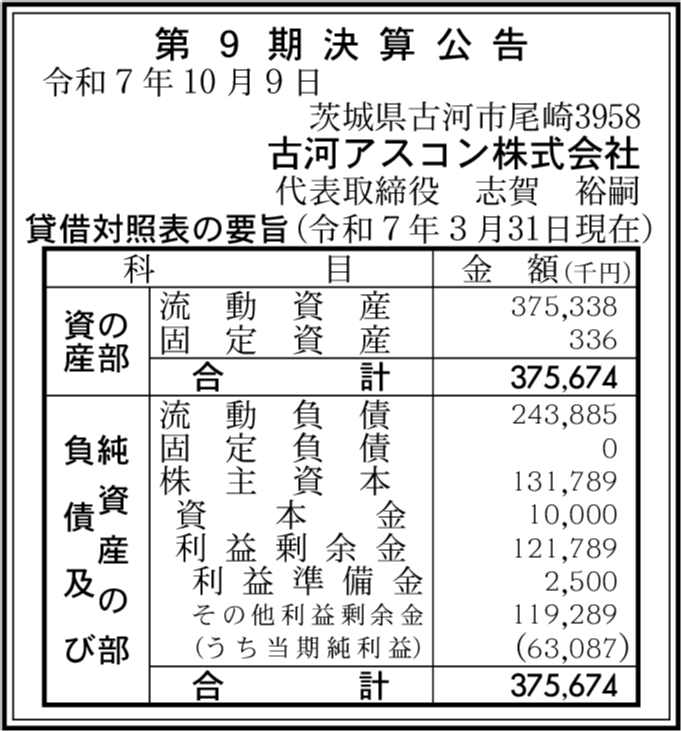 古河環境サービス株式会社 茨城県古河市 【2025年3月期】 |