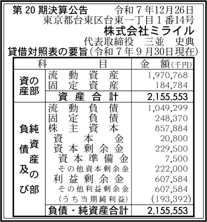 株式会社Bamboo.AI 東京都台東区 【2025年7月期】 |
