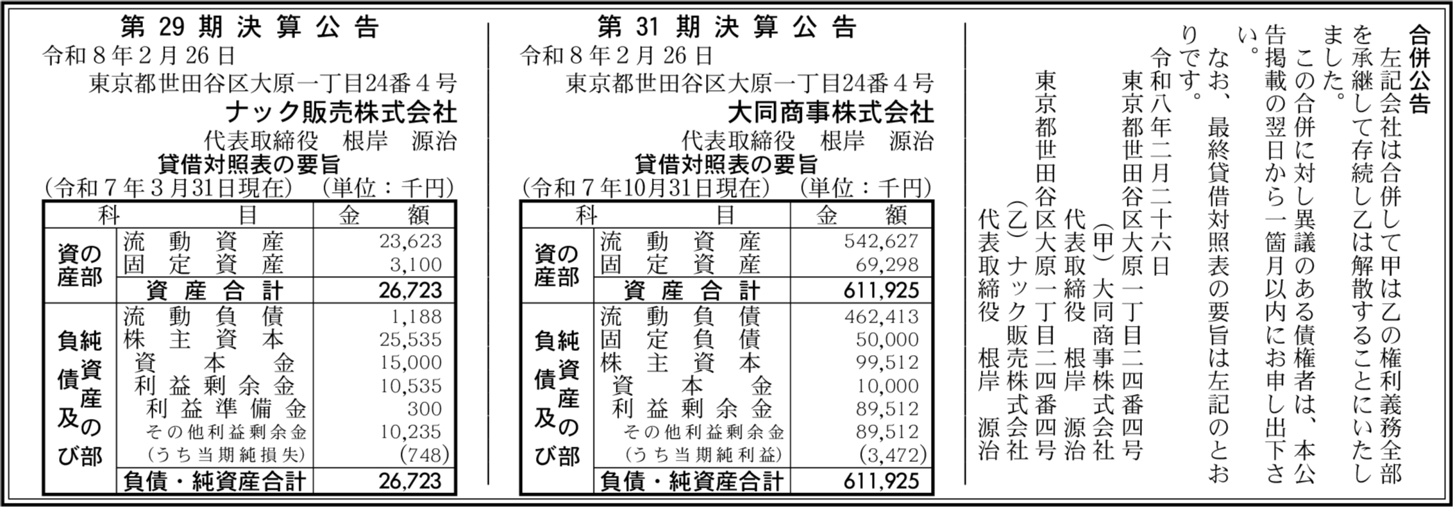 ナック販売株式会社 東京都世田谷区 【2025年3月期】 |