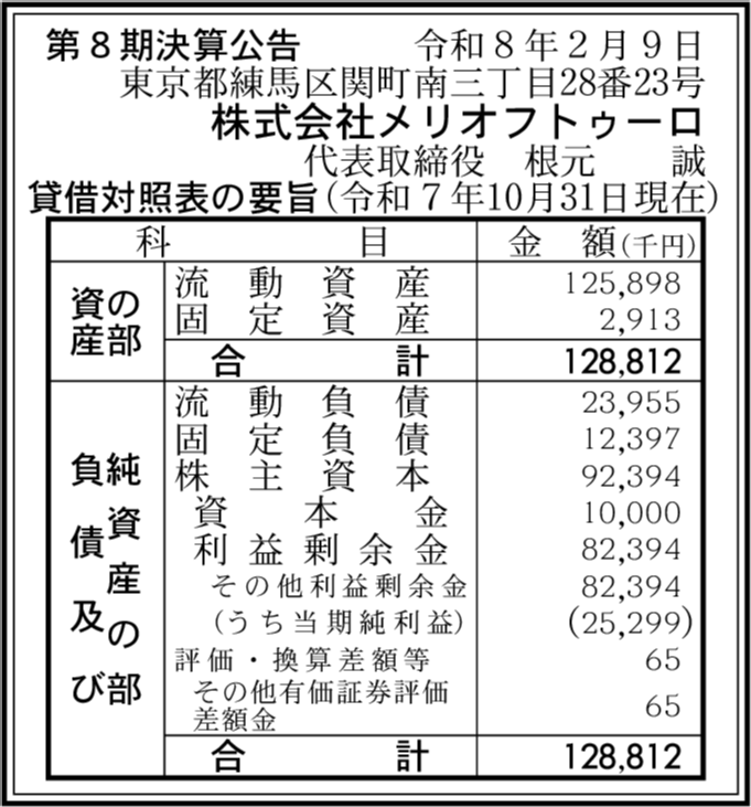 株式会社トミー精工 東京都練馬区 【2025年6月期】 |