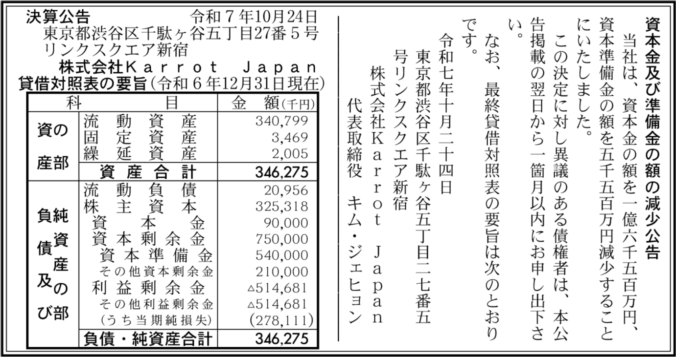 | 会社名 | 株式会社Karrot Japan |