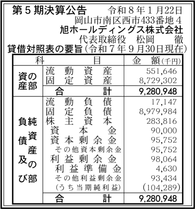 旭ソーラー総社新本発電株式会社 岡山市南区 【2025年9月期】 |