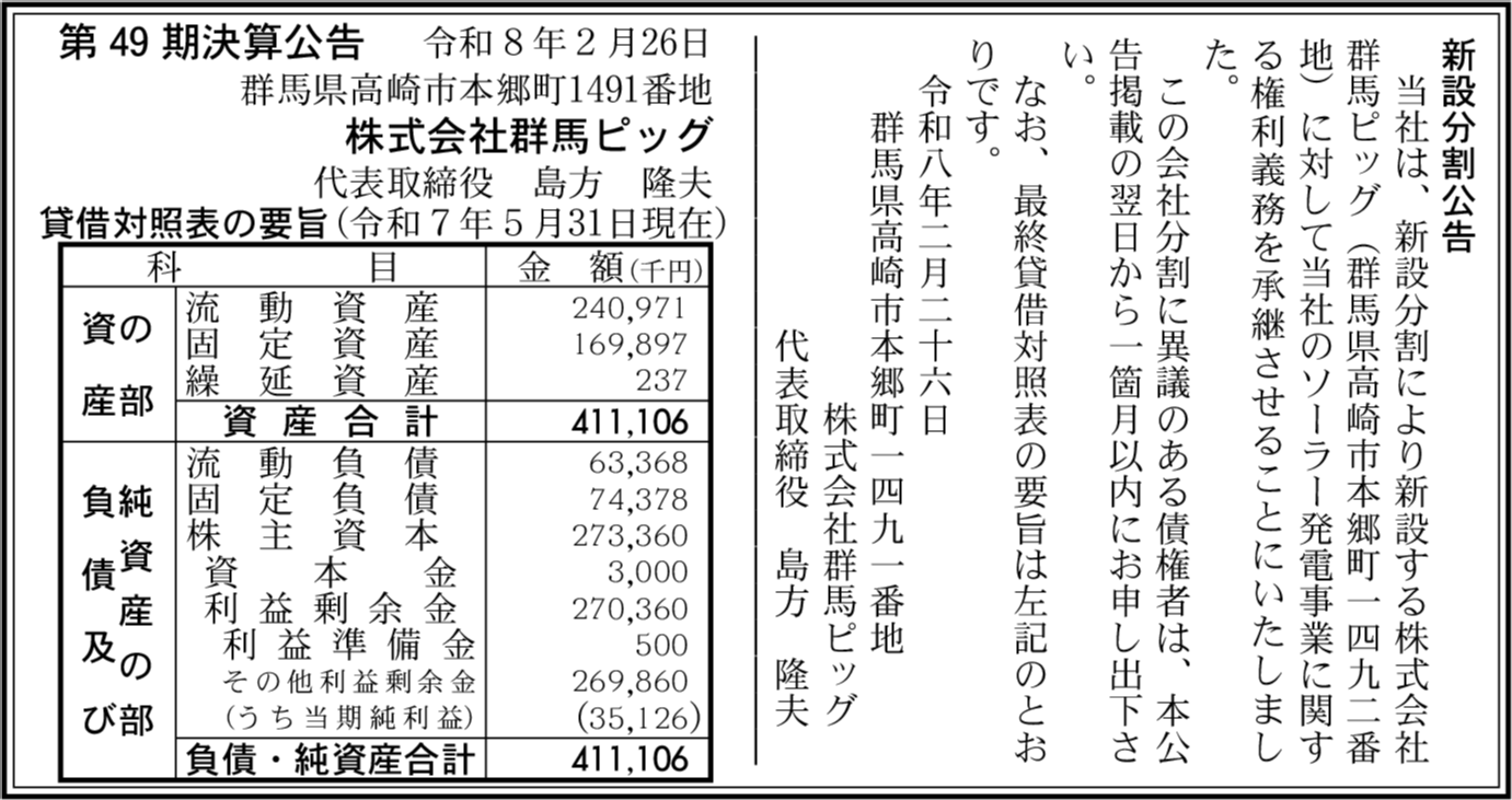 MCP30株式会社 群馬県高崎市 【2025年7月期】 |
