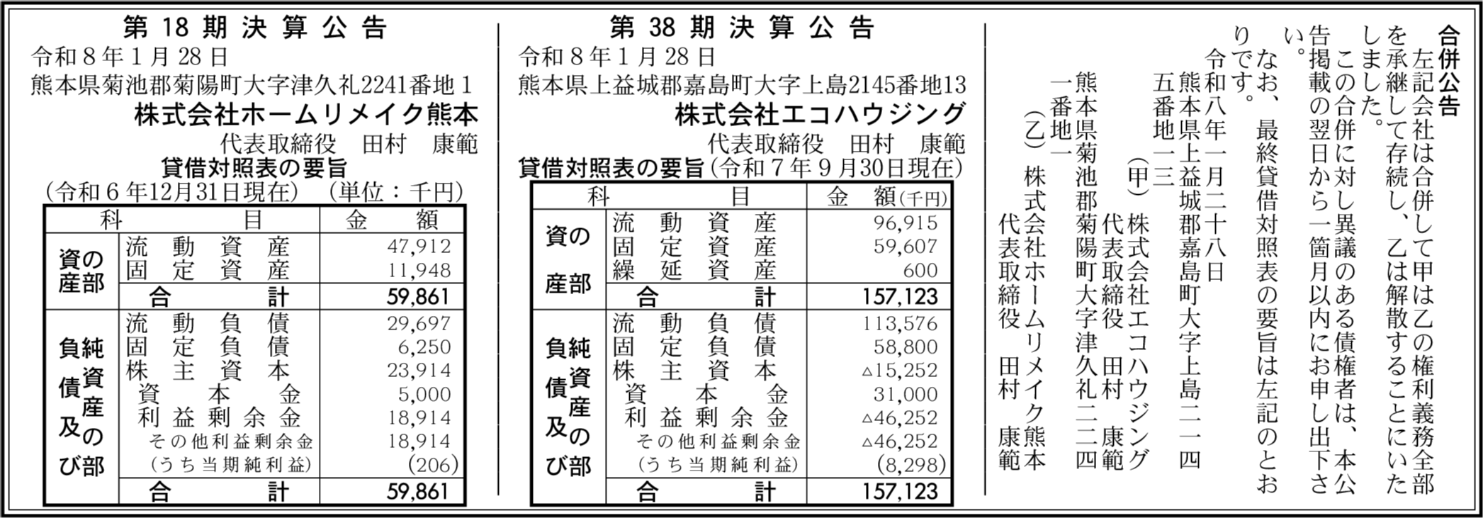 株式会社エコハウジング 熊本県上益城郡嘉島町 【2025年9月期】 |
