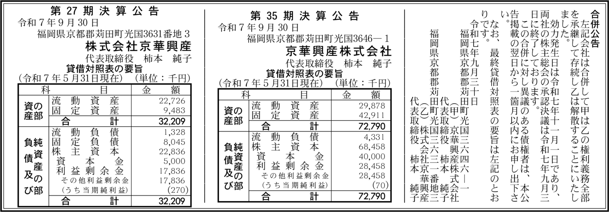 株式会社京華興産 福岡県京都郡苅田町 【2025年5月期】 |