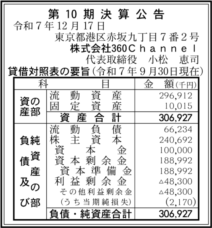 | 会社名 | 株式会社360Channel |