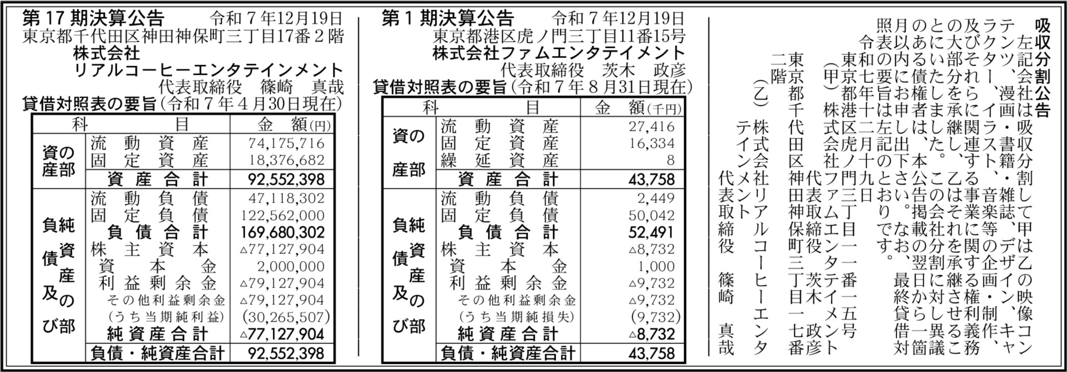株式会社ファムエンタテイメント 東京都港区 【2025年8月期】 |