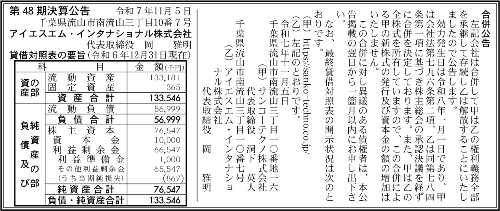 アイエスエム・インタナショナル株式会社 千葉県流山市 |