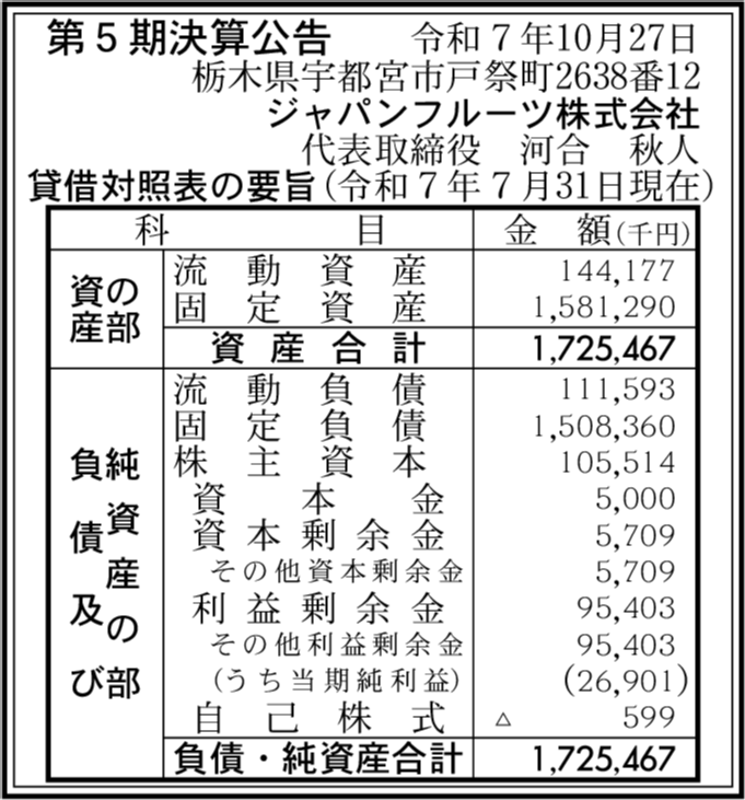 株式会社ブレス 栃木県宇都宮市 【2025年7月期】 |