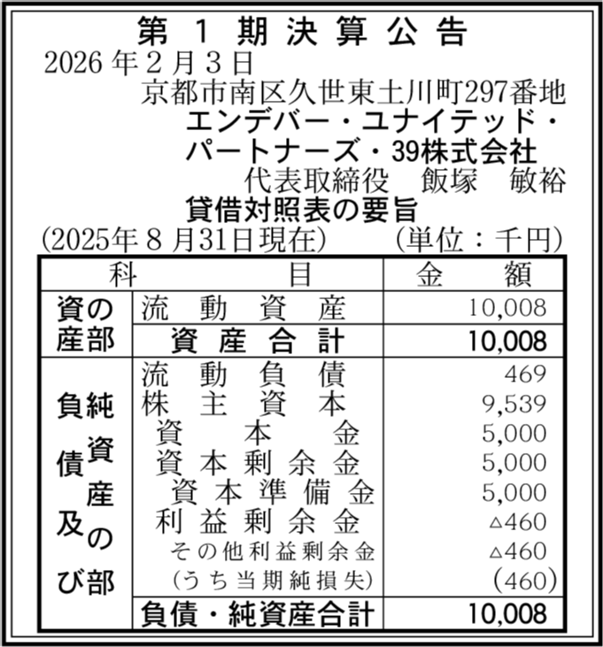 | 会社名 | エンデバー・ユナイテッド・パートナーズ・39株式会社 |