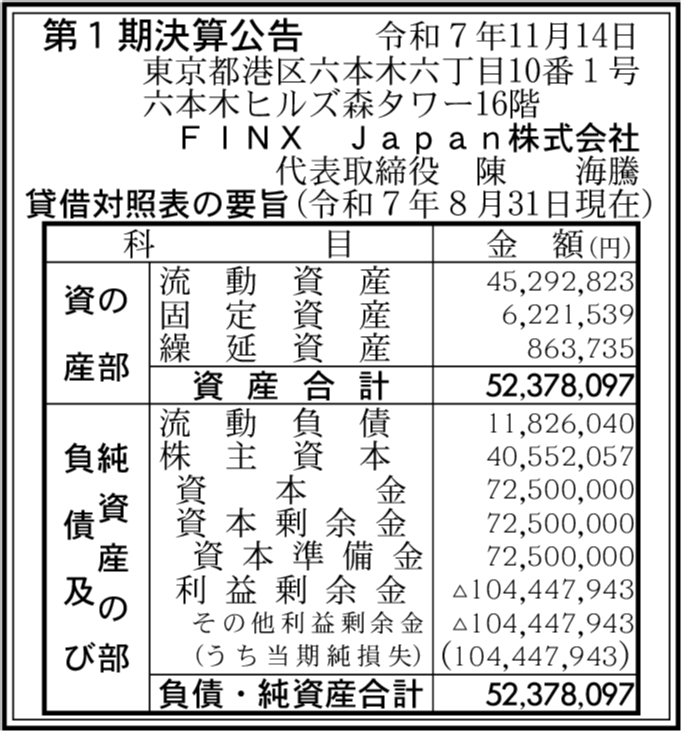 | 会社名 | FINX Japan株式会社 |