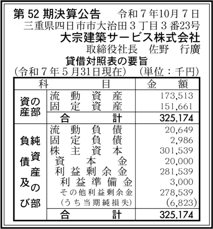大宗建設株式会社 三重県四日市市 【2025年5月期】 |