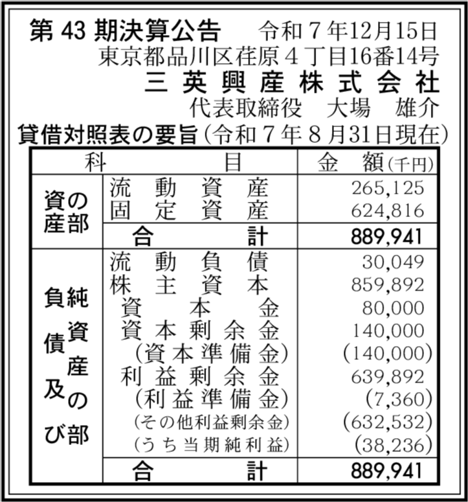 株式会社三英社製作所 東京都品川区 【2025年3月期】 |