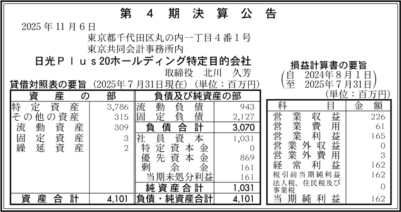 | 会社名 | 日光Plus20ホールディング特定目的会社 |