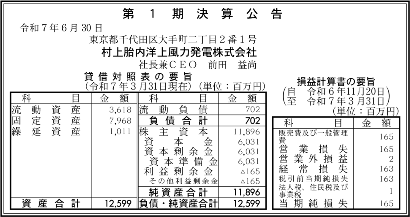 会社名 | 村上胎内洋上風力発電株式会社 |