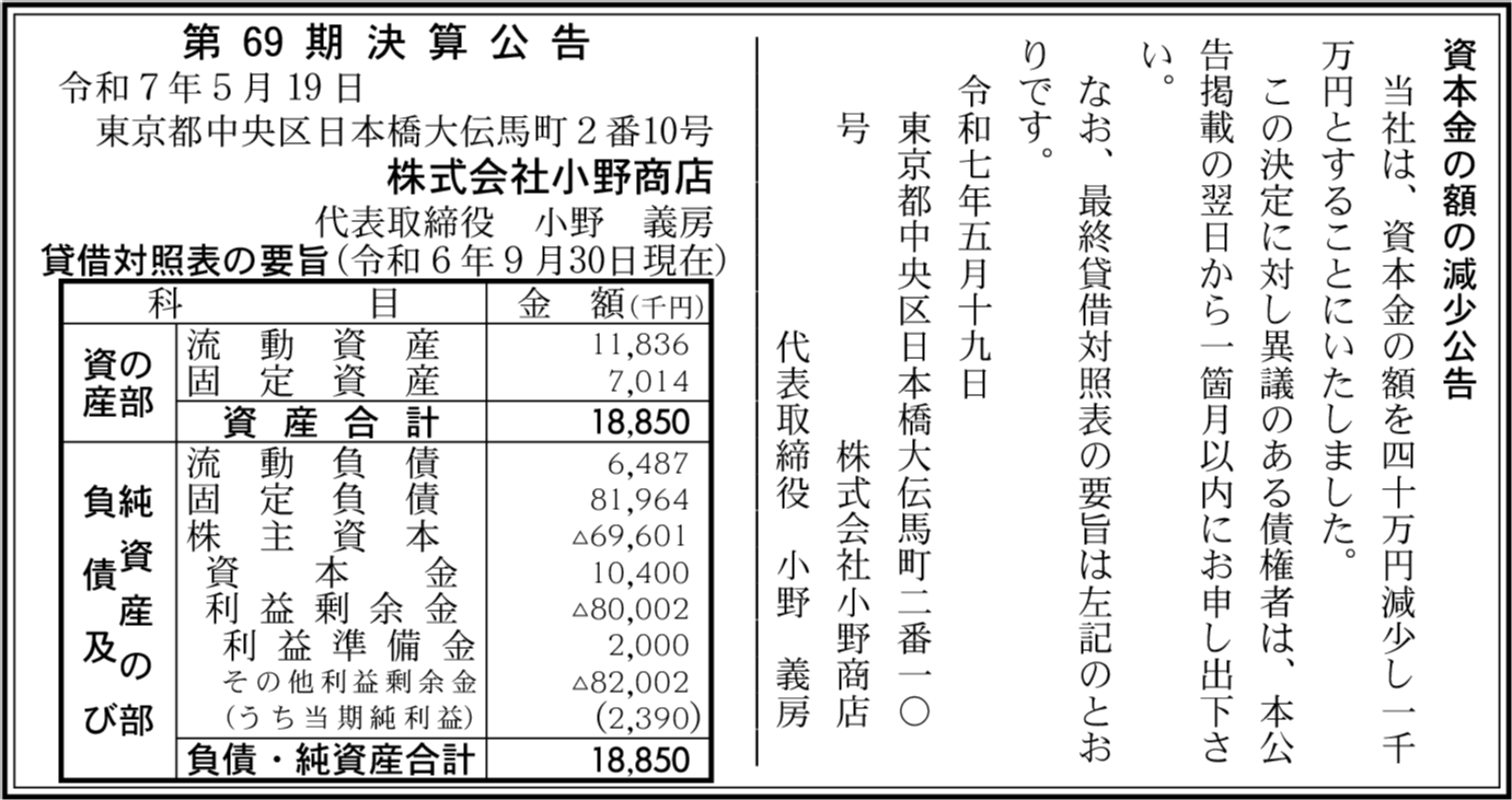 | 会社名 | 株式会社小野商店 |