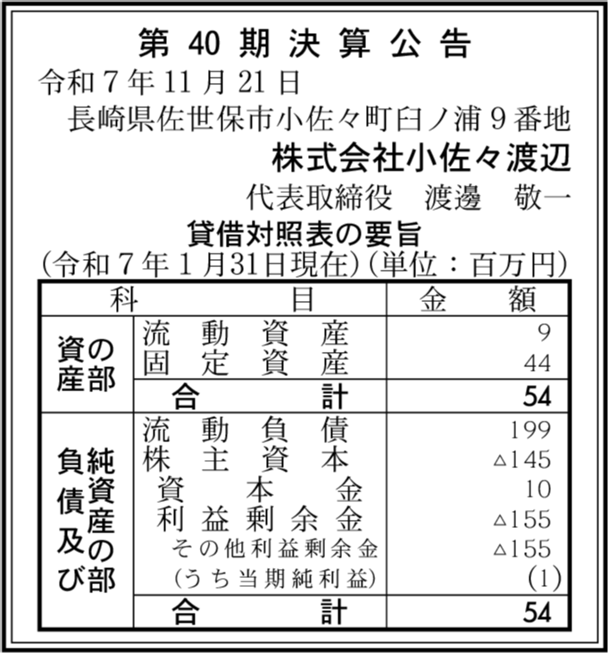 | 会社名 | 株式会社小佐々渡辺 |