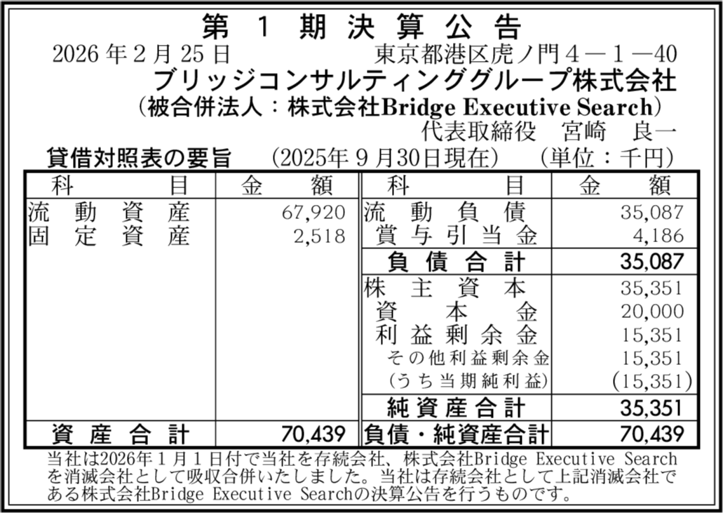 株式会社BridgeResourceStrategy閉鎖済み 東京都港区 【2024年9月期】 |