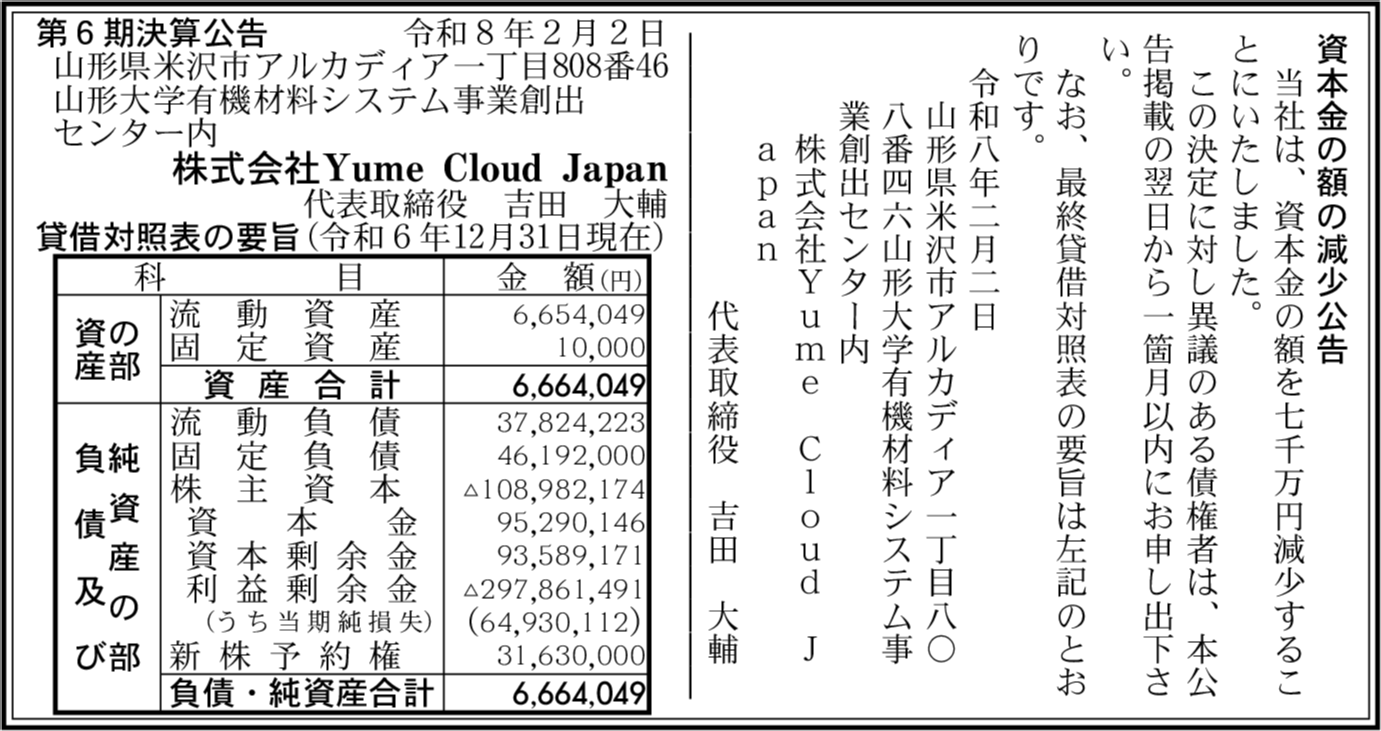 | 会社名 | 株式会社Yume Cloud Japan |