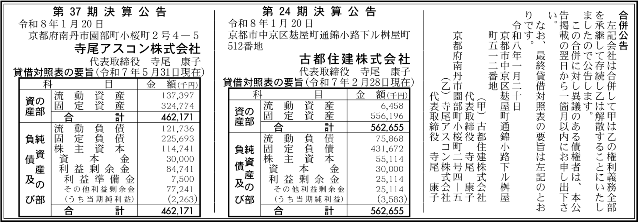 寺尾アスコン株式会社 京都府南丹市 【2025年5月期】 |