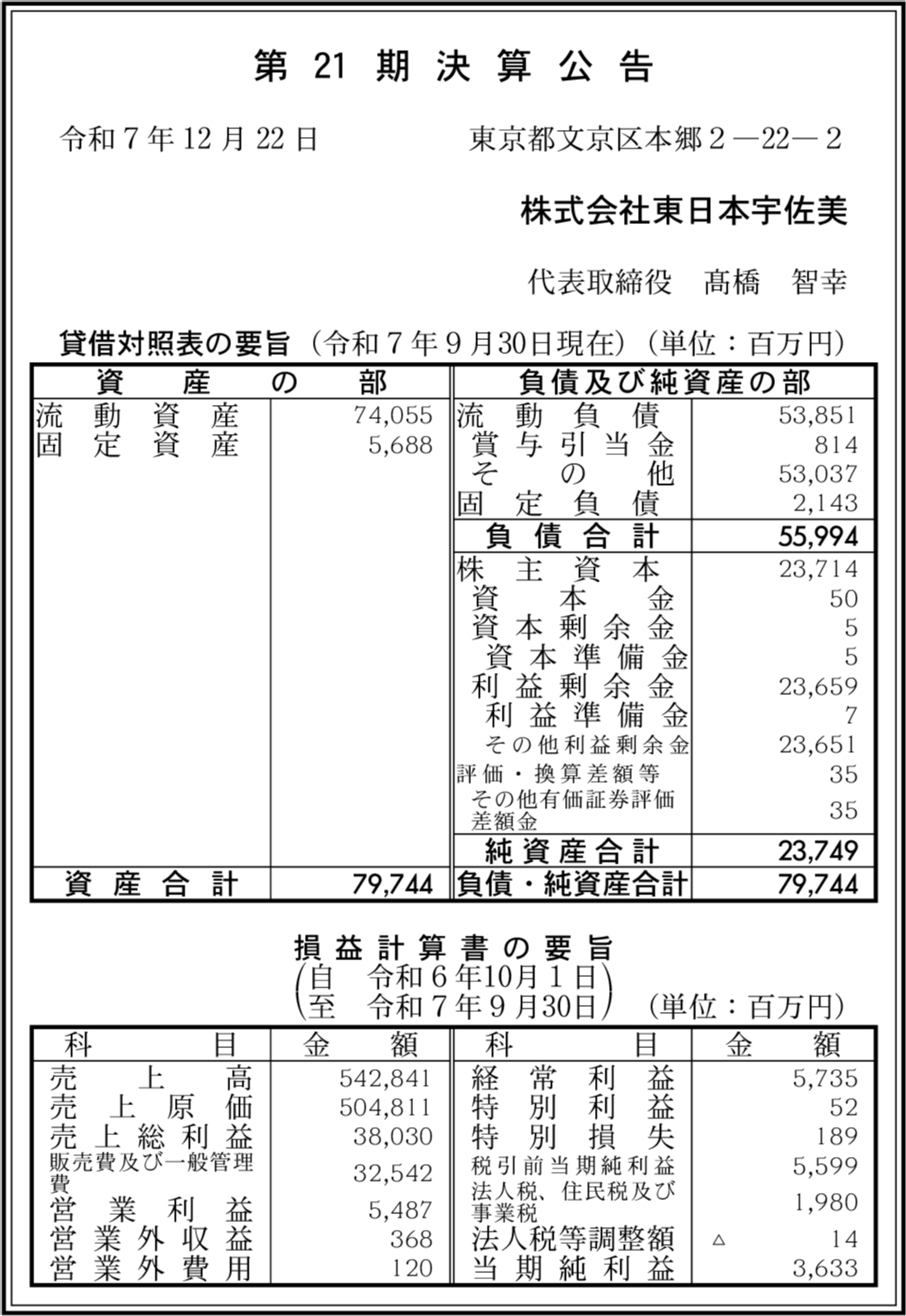 株式会社西日本宇佐美 愛知県津島市 【2025年9月期】 |
