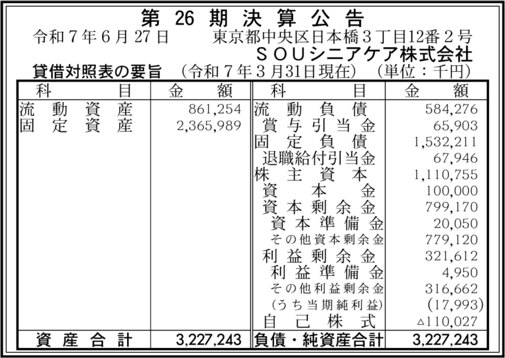 総資産 | 32億2,724万3,000円 (▲2.88%) |