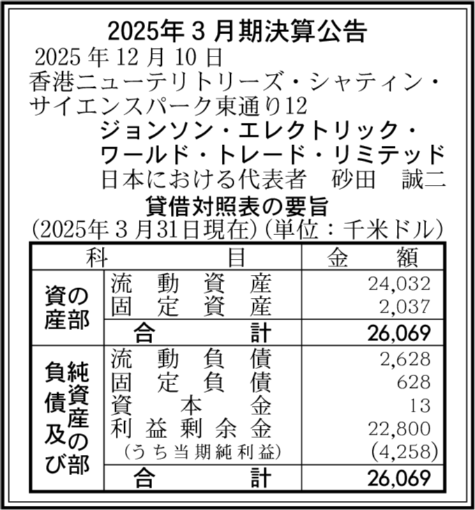 | 会社名 | ジョンソン・エレクトリック・ワールド・トレード・リミテッド |