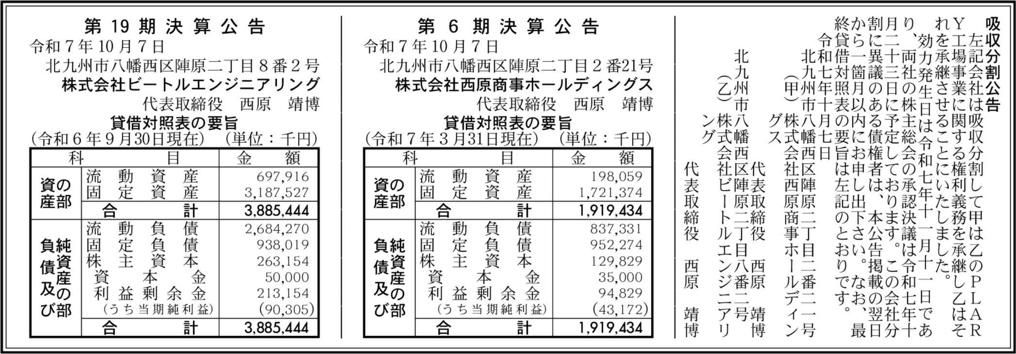株式会社ビートルエンジニアリング 北九州市八幡西区 【2024年9月期】 |