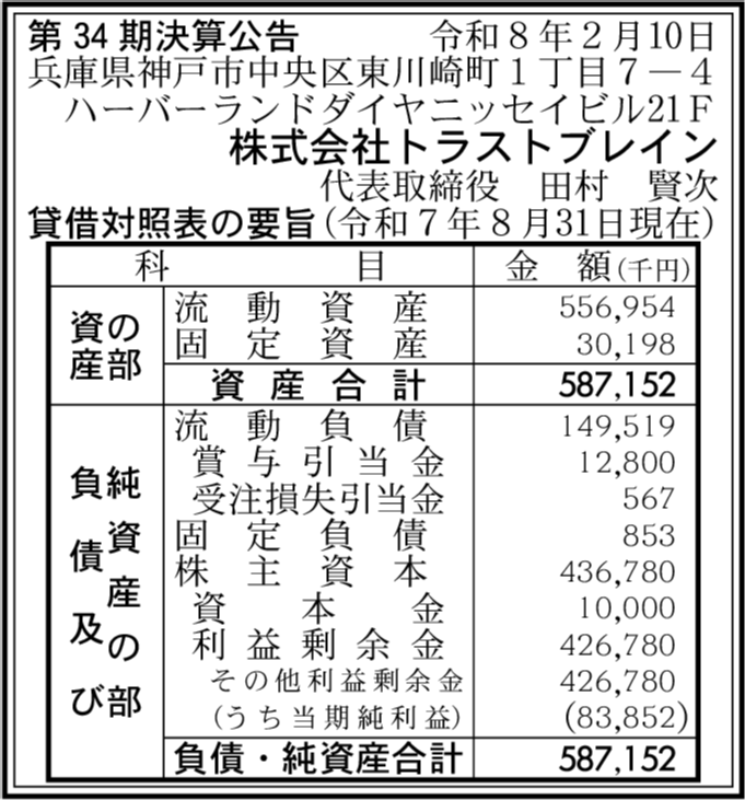 株式会社トラストブレイン 兵庫県神戸市中央区 |