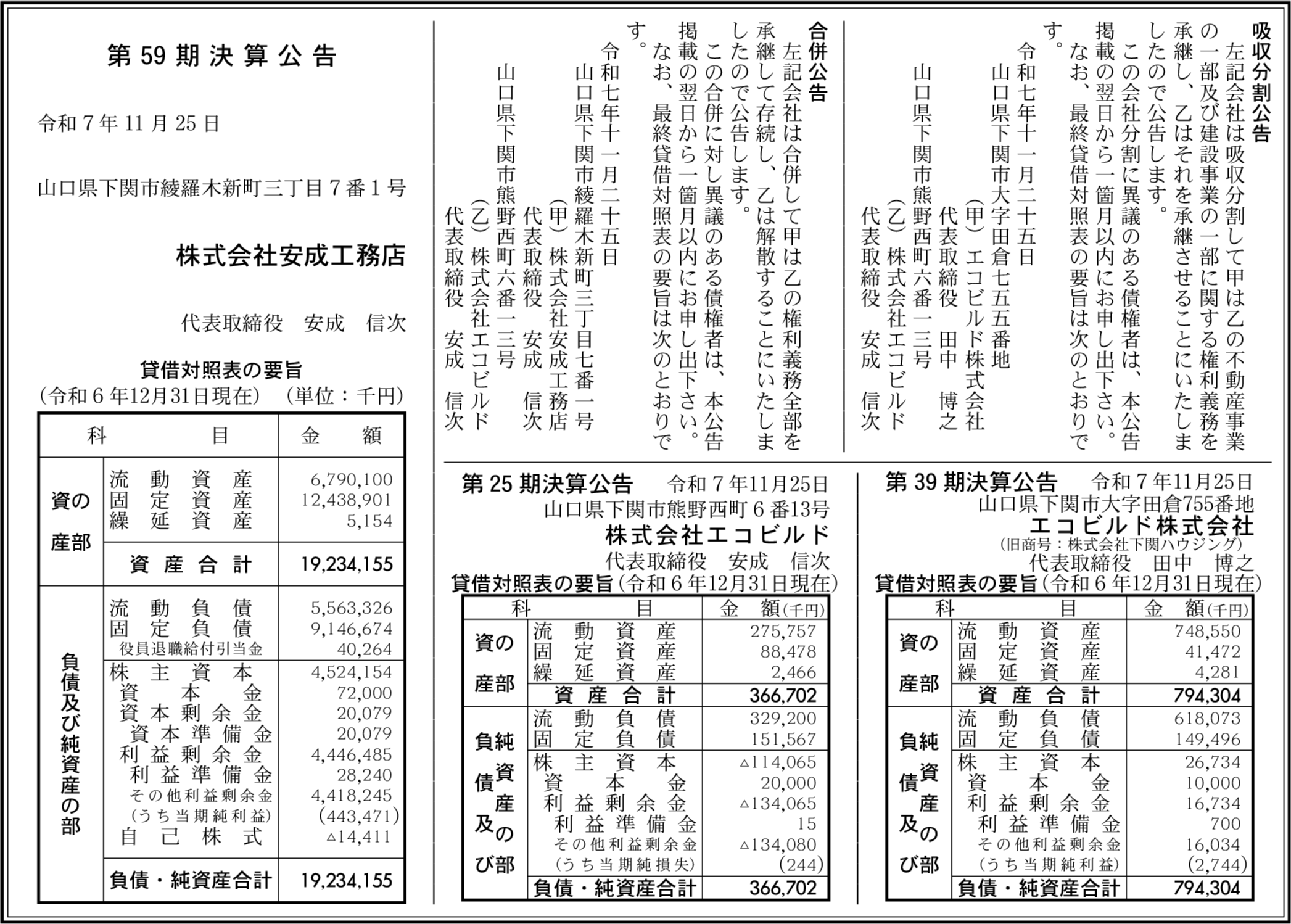 エコビルド株式会社 山口県下関市 【2024年12月期】 |
