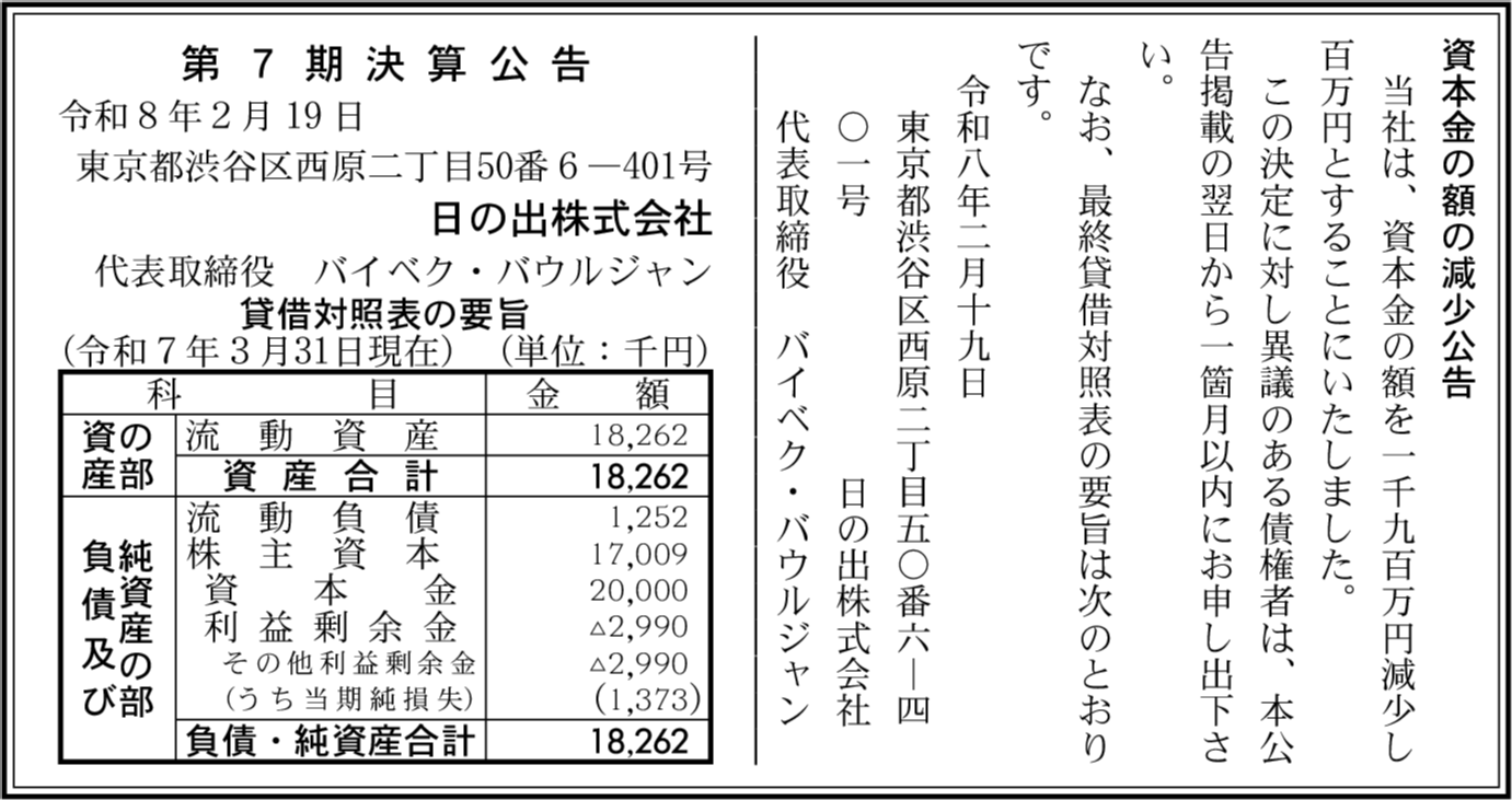 | 会社名 | 日の出株式会社 |